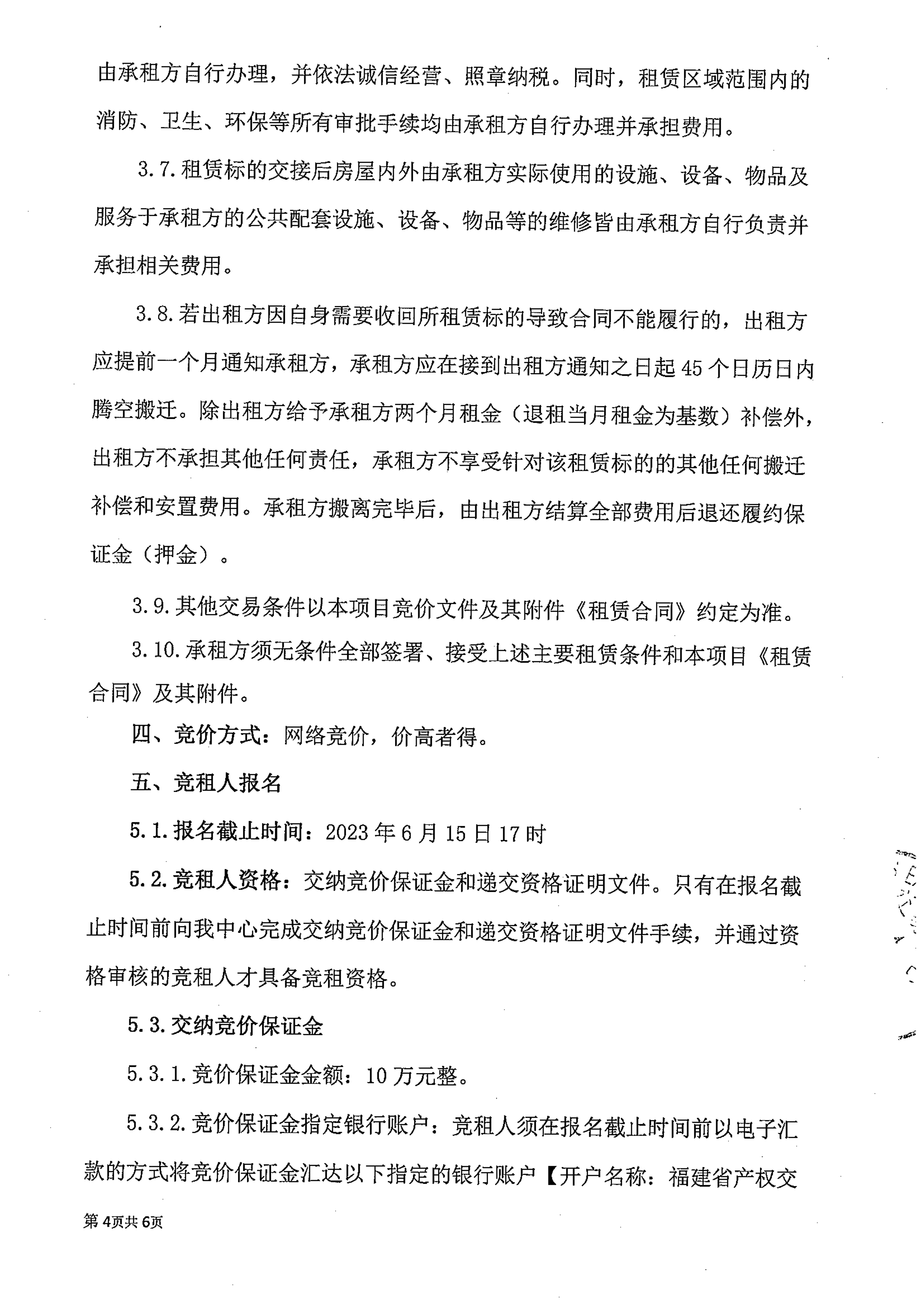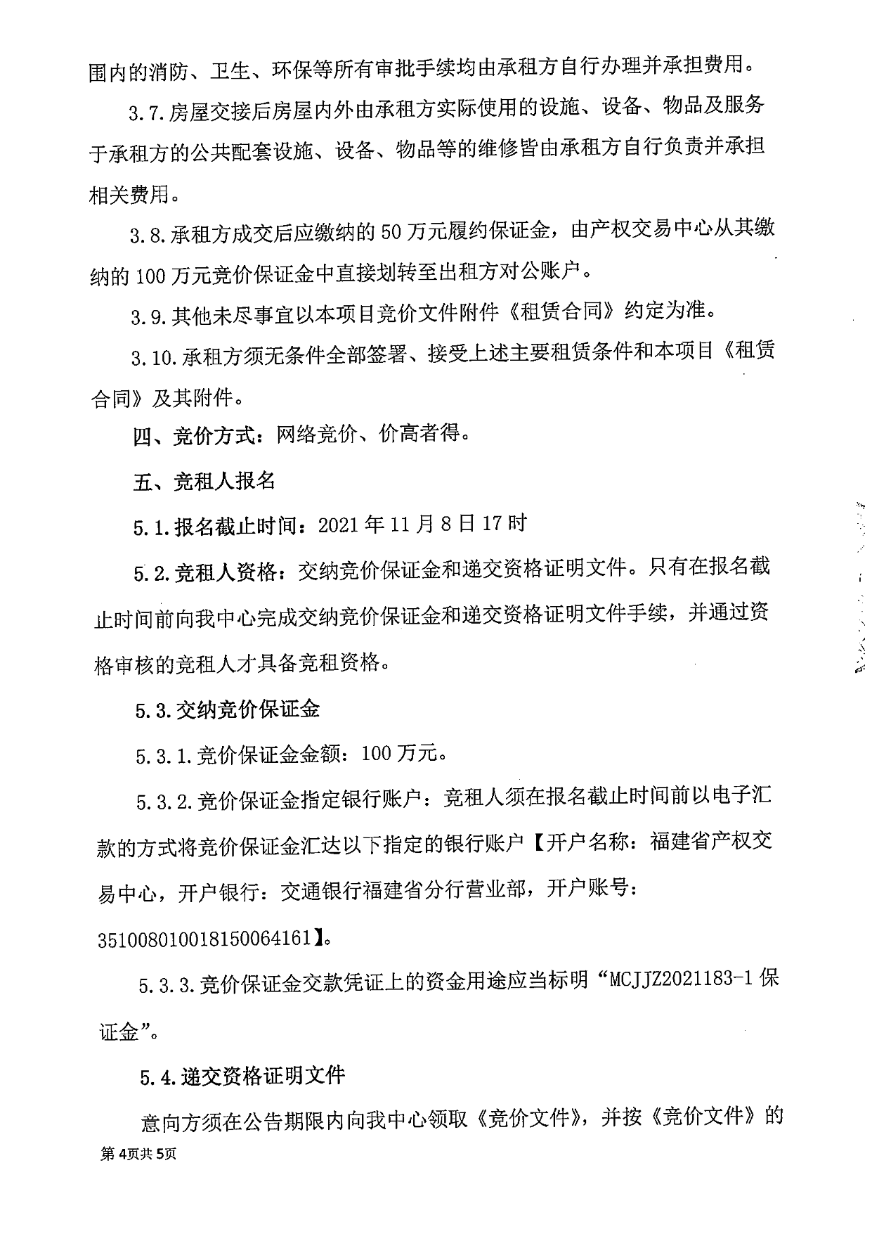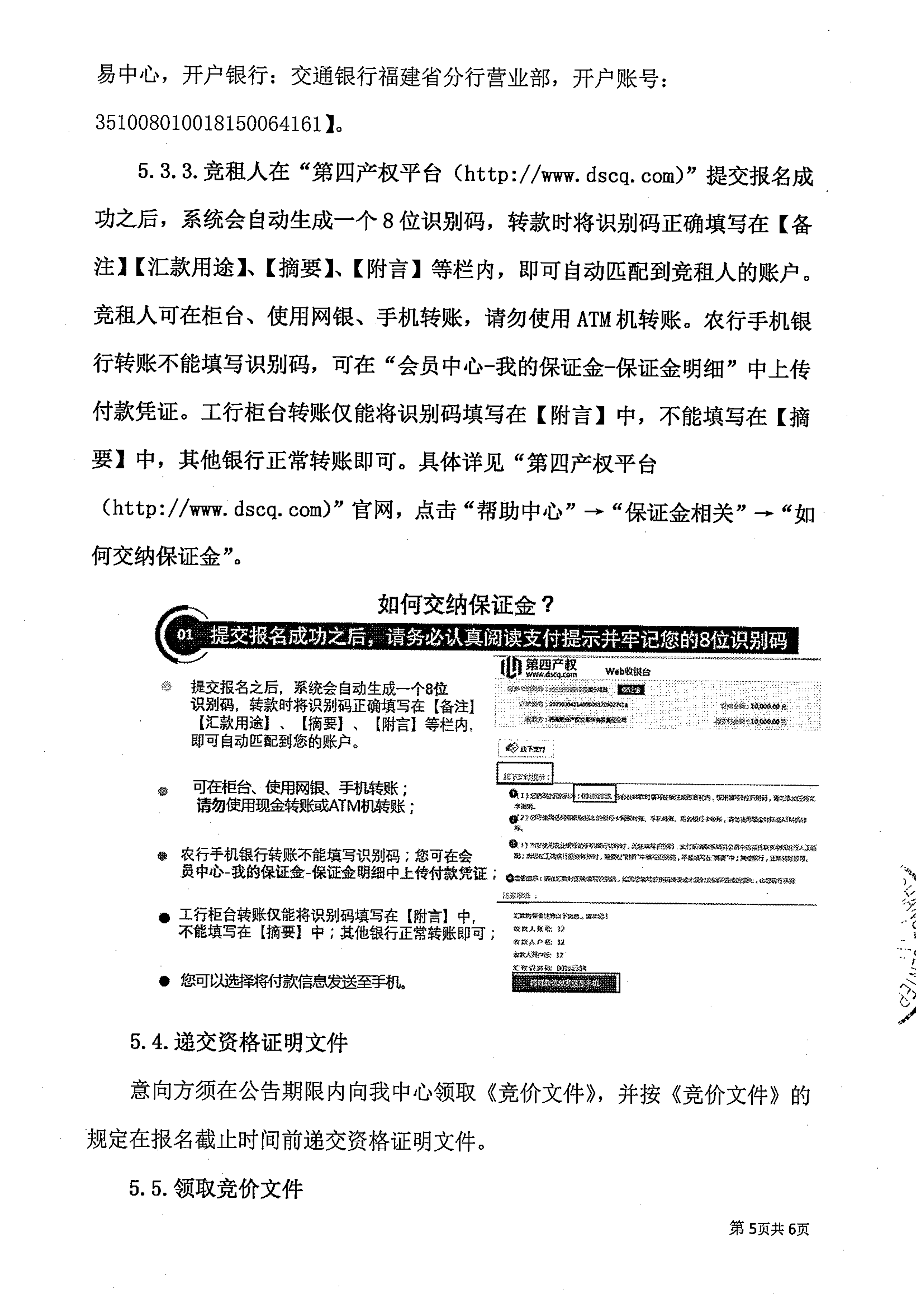 開戶行:廈門銀行股份有限公司龍巖分行,戶名:龍巖市產(chǎn)權(quán)交易中心有限公司,賬號:以權(quán)益云交易平臺指定的賬號為準(報名參加的競租人與繳納交易保證金的名稱要一致)。